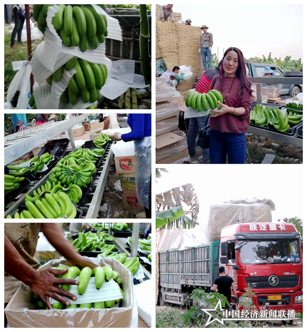 采訪結(jié)束時(shí),記者看到香蕉園區(qū)正有一輛收果的貨車正在采裝香蕉,只見顆顆果形漂亮且飽滿圓潤的香蕉通過清洗、分揀、覆膜、裝箱,然后搬上大貨車,運(yùn)到全國各地。